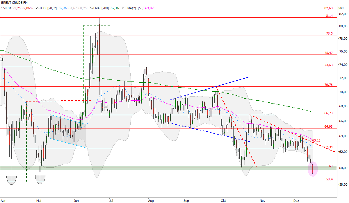 Brent Crude fällt dynamisch unter 60-Dollar-Marke