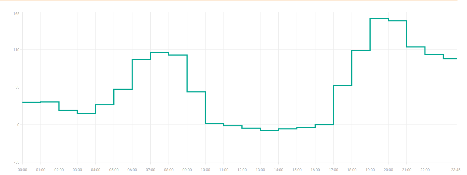 Die heutigen Spotpreise folgten dem erwarteten Verlauf mit klarer Morgenspitze, flacher Mittagsdelle und ausgeprägtem Abendpeak. Am Morgen lagen die Preise mit rund 117 Euro/MWh nahezu auf Höhe unserer Prognose von 120 Euro/MWh. Zur Mittagszeit blieben sie etwas über den Erwartungen und fielen nur knapp über 0 Euro/MWh, obwohl unsere Modelle negative Werte angezeigt hatten. Der Zeitraum von 11 bis 17 Uhr war mit einem Durchschnitt von lediglich 3,65 Euro/MWh dennoch extrem günstig. Am Abend erreichten die Preise mit rund 134 Euro/MWh deutlich weniger als zuvor prognostiziert, was auf höhere Einspeisung und eine geringere Lastzunahme zurückzuführen ist. Der durchschnittliche Tagespreis lag bei 65,73 Euro/MWh.