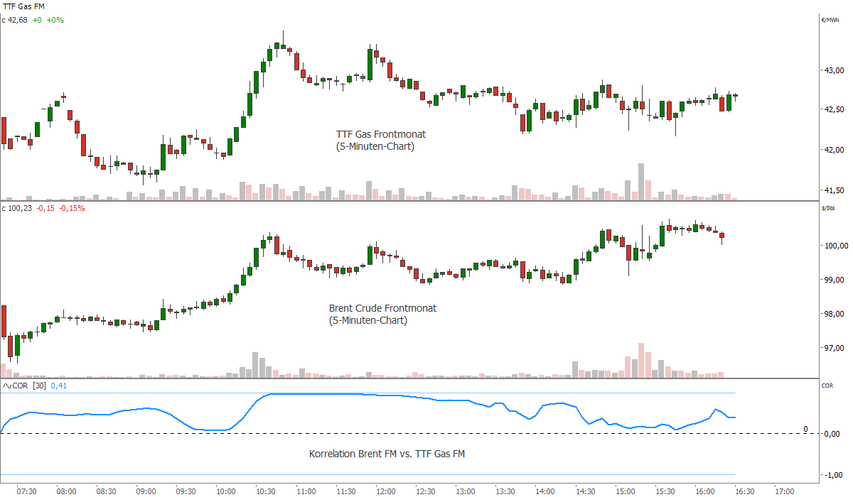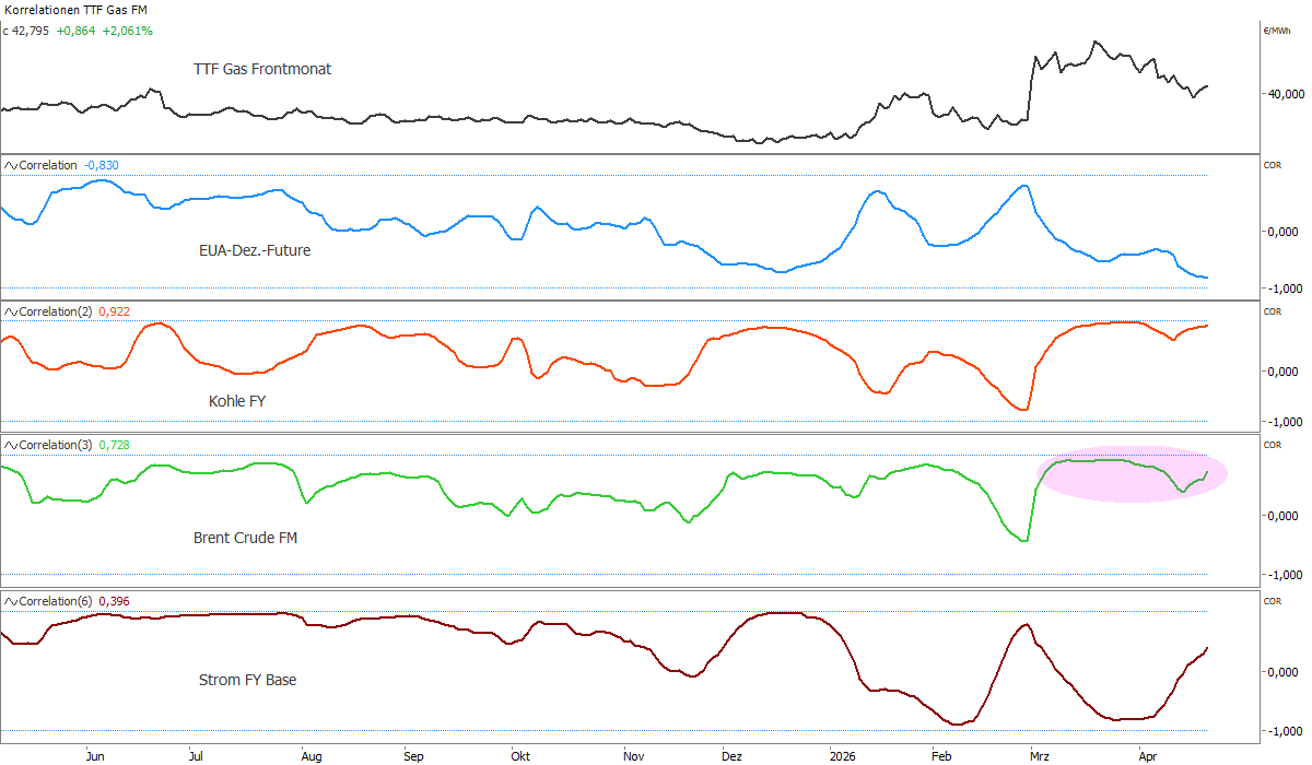 Korrelation Brent Crude und TTF Gas FM weiterhin hoch