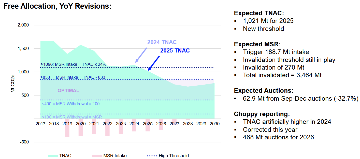Beschleunigt wurde dieser Schritt durch eine nachträgliche Korrektur von Reporting-Verzerrungen aus dem Jahr 2024, die sich im TNAC des Jahres 2025 niedergeschlagen hatten. Damals hatte verspätetes Emissionsreporting den Überschuss künstlich erhöht und damit einen stärkeren MSR-Entzug ausgelöst, als fundamental gerechtfertigt war. Mit den nun vollständig vorliegenden Daten wird dieser Effekt bereinigt, sodass der TNAC sichtbar niedriger ausfällt und die Schwelle früher unterschritten wird als bislang erwartet.