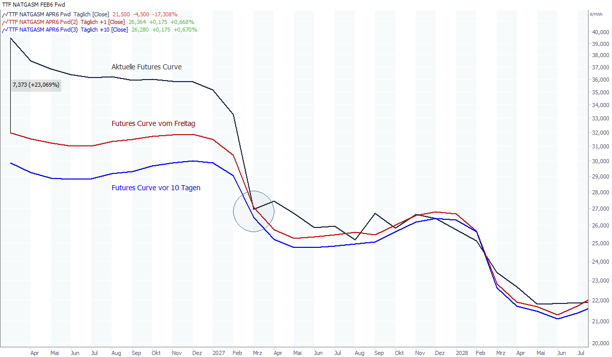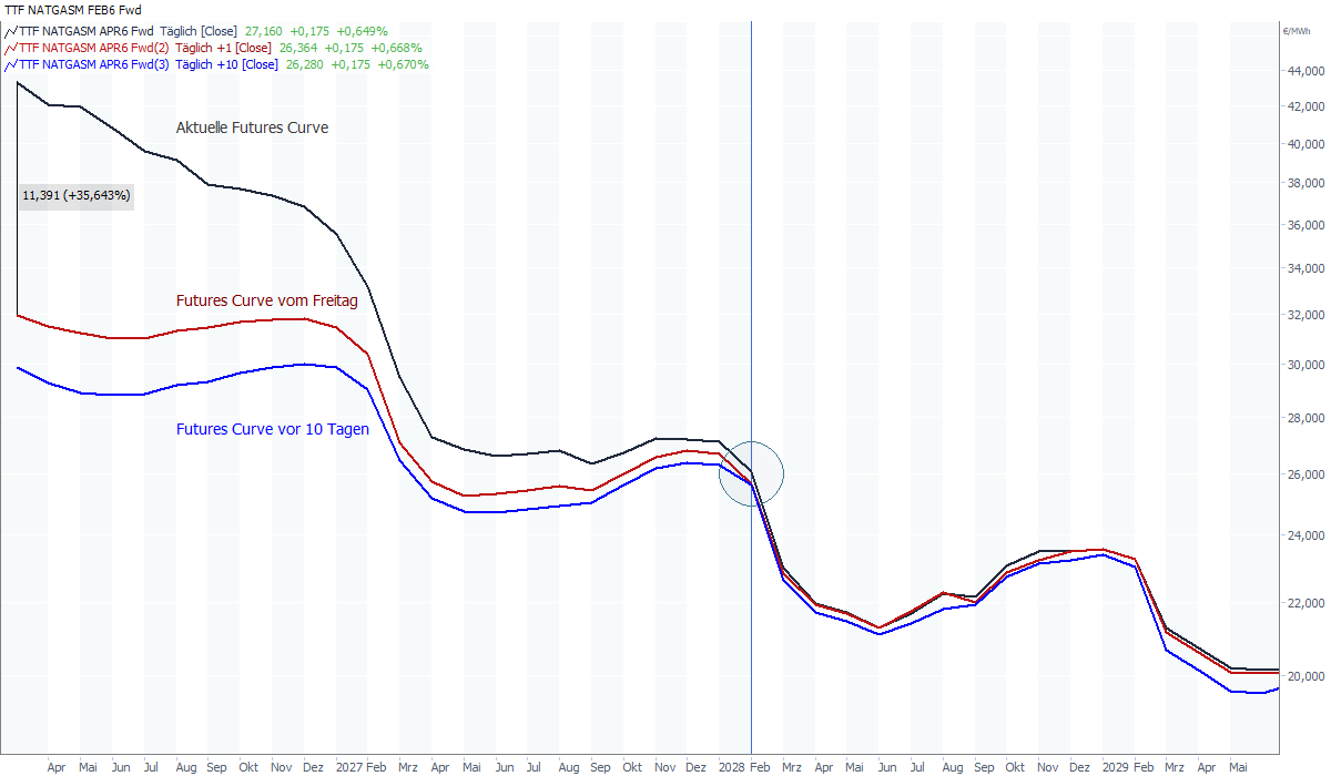 TTF Gas Futures-Curve ab März 2028 unverändert